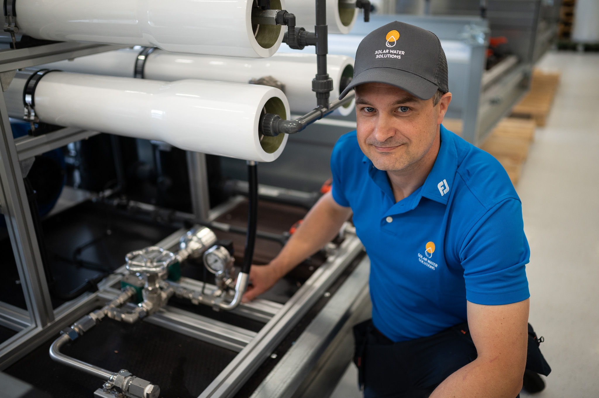 Solar Water Solutions’ advanced, adaptive nozzle valve system ANVS® couples efficient desalination technology with solar energy for seawater and brackish water treatment. The company’s technology offers low-cost, containerized, and mobile on-a-trailer desalination systems for remote communities while removing the need for reliable grid energy.